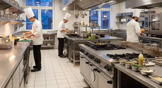 As cozinhas dos restaurantes da Garfo e Faca contam com equipamentos exclusivamente de uso profissional, área específica para armazenamento e acondicionamento dos alimentos, atendendo todos os requisitos de higiene definidos pela vigilância sanitária.