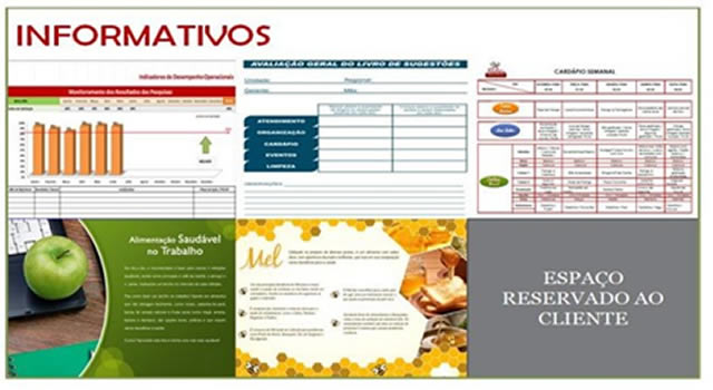 Constantemente são desenvolvidos informativos de mesas e murais com os mais diferentes temas, deixando o ambiente do restaurante muito mais atrativo .